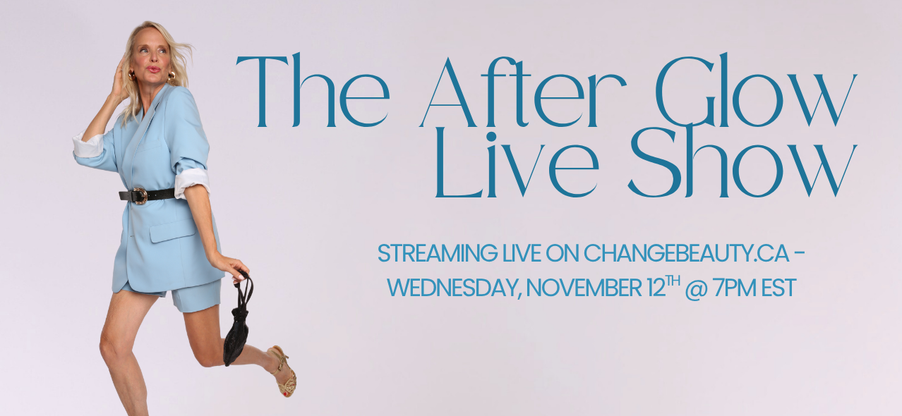 Join Jules at HERE (changebeauty.ca) on Wednesday, November 12th for The After Glow Show — a night of easy, real-life beauty talk, a touch of glam, and a few laughs!