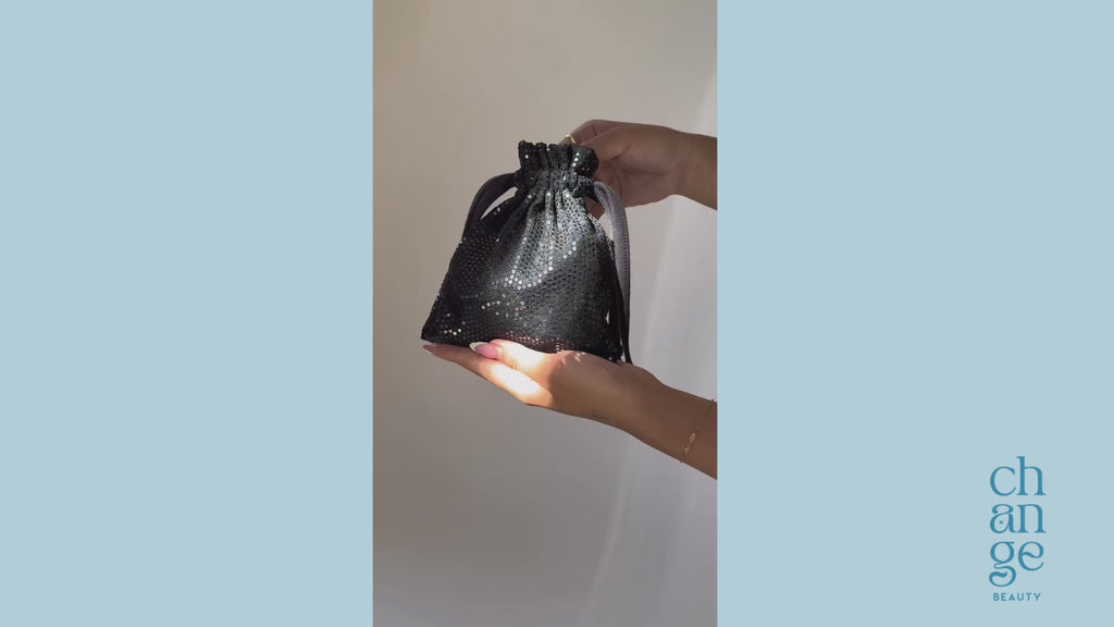 The Sleigh Starter Pack is bundled with 3 of our non-negotiables to help you slay your day! Light those eyes up with the Lid Lust Cream Eyeshadow in Talk to Me Taupe, add a little definition with the Doubling Down Mascara and for a perfect pout, swipe on a little Sweet Talk Lipgloss in Raspberry Flirt. These shades compliment all skin tones–there’s no going wrong with this gift, so pick one up for yourself and a friend! Offered with a Preloved x Change Beauty black sparkle holiday bag, made right here in Canada with remnants from Preloved’s holiday collection. When you show up with this starter pack, baby you'll be the gift they’re most thankful for!